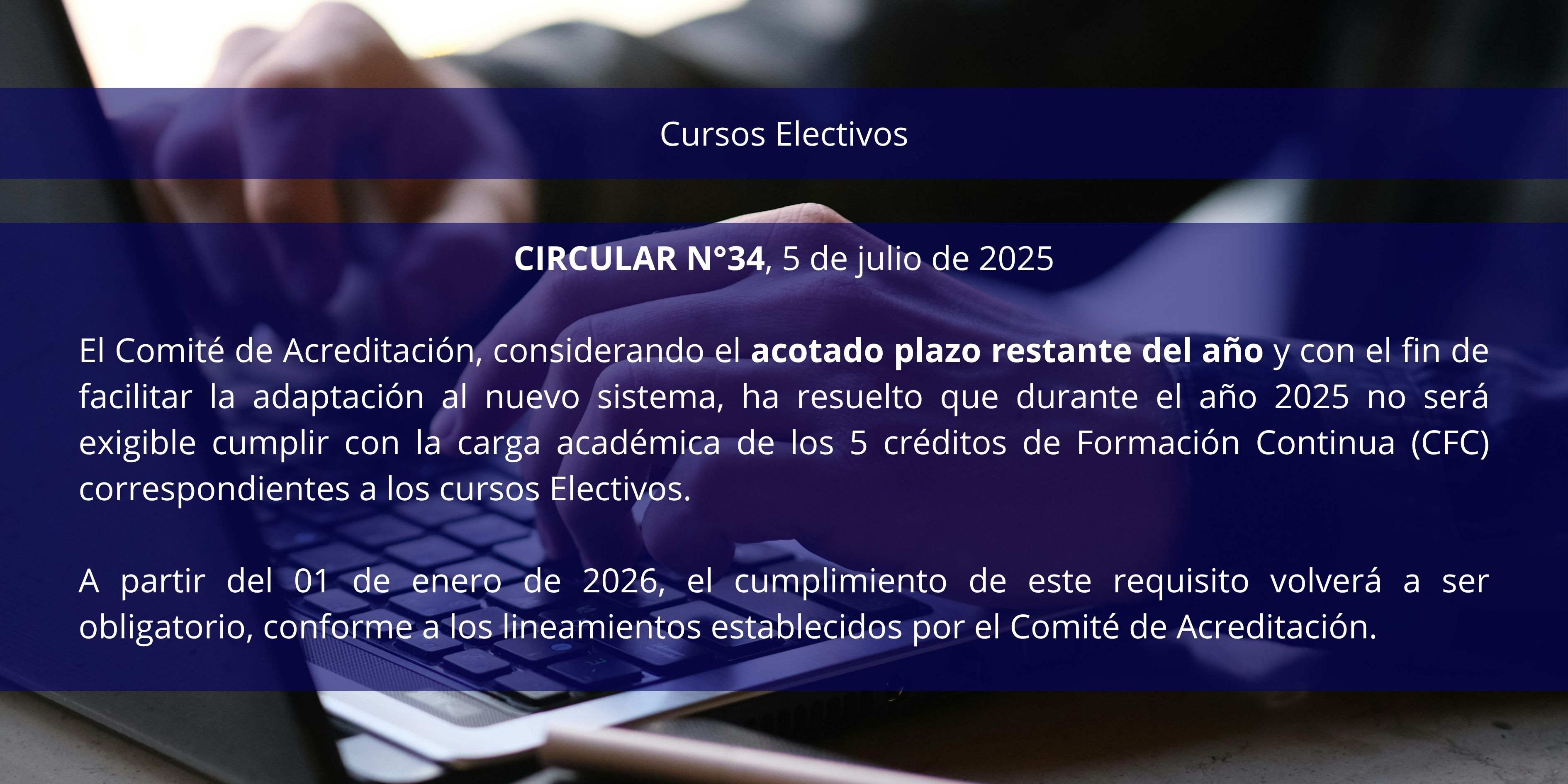 Por medio de la presente, se informa que, a partir del día de mañana, se procederá a la actualización de las fechas en la plataforma correspondiente para cada uno de los cursos, cuya vigencia se extenderá hasta el 31 de marzo de 2026, en conformidad con lo dispuesto en la Circular N° 35 del Comité de Acreditación de Conocimientos en el Mercado de Valores.